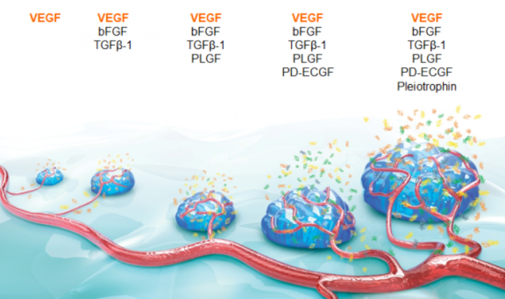 肿瘤的生长,甚至转移,很大程度上依赖于肿瘤血管的生成,而血管内皮生长因子(VEGF)是导致肿瘤血管生成的最重要的物质。