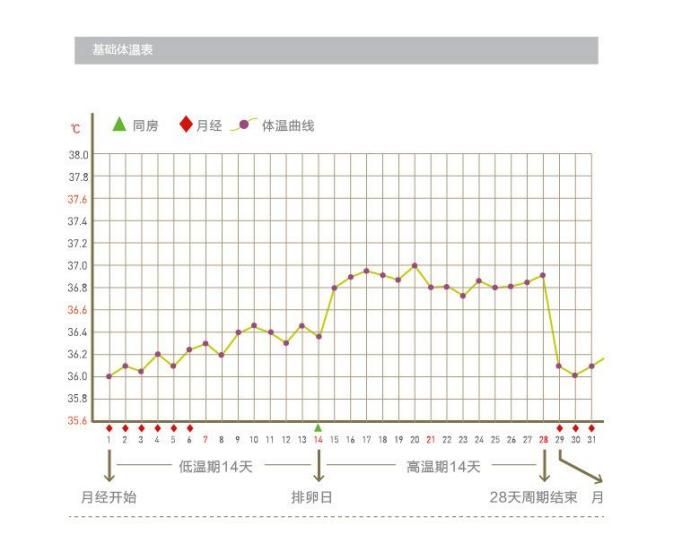 3.基础体温测定是一个简便经济的测排卵以及黄体功能的办法我们需要准备一个水银体温计(专为测基础体温而设计的基础电子体温计也可);晚上睡前将体温计放在枕边,在睡眠6~8小时后醒来不起床、不说话、不上厕所的情况下测量体温,将每日体温进行记录,绘制曲线。女性在排卵后,由于孕激素的作用,基础体温会上升0.3~0.5℃,并且维持约14;伴随下次月经来潮,体温会迅速下降。所以通过基础体温的测量,可以帮助判断是否有排卵以及黄体功能情况