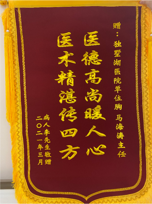 患者李先生赠送锦旗感谢我院胸心大血管外科马海涛主任