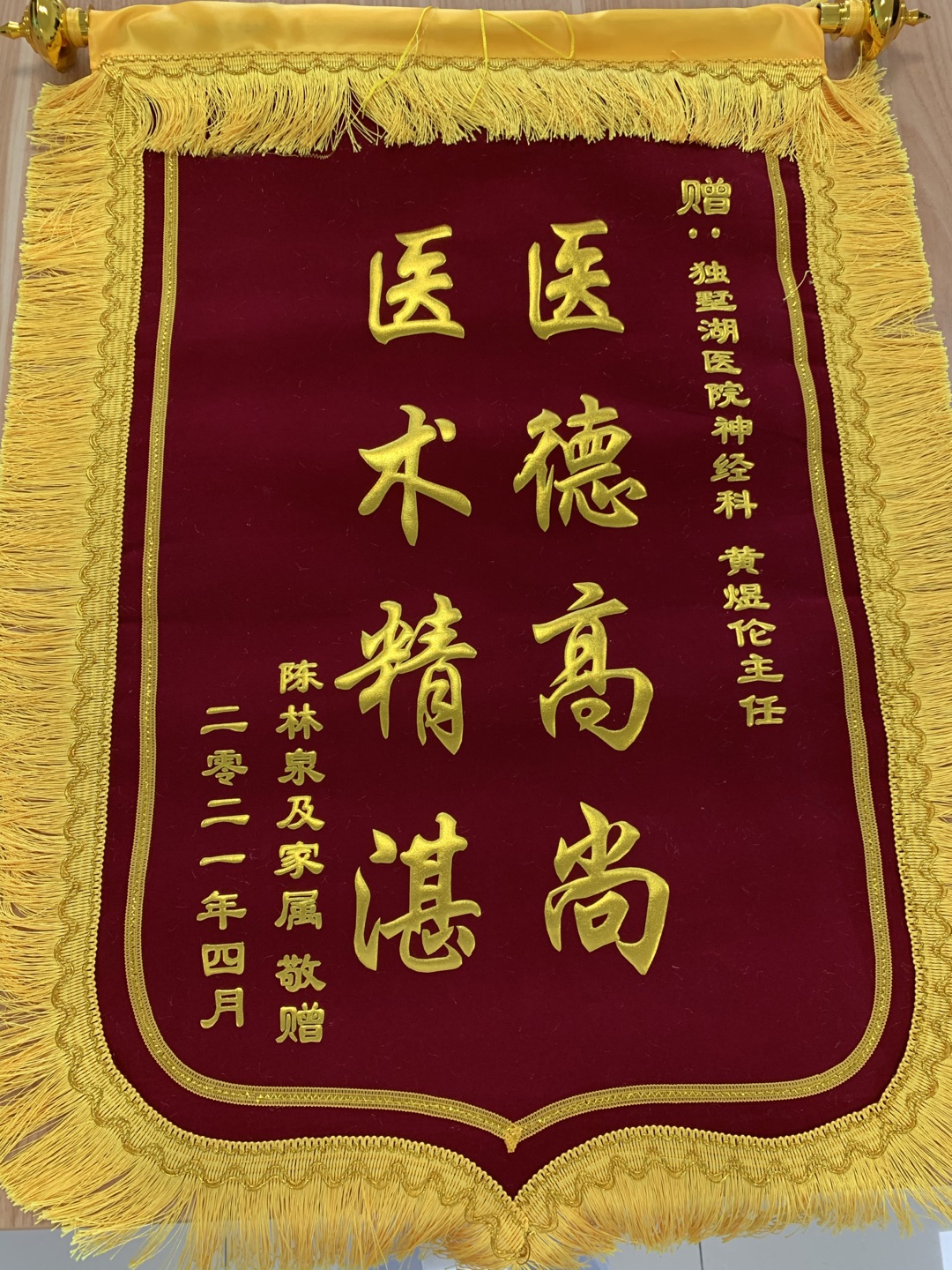 患者陈先生及家属赠送锦旗感谢我院神经外科黄煜伦主任