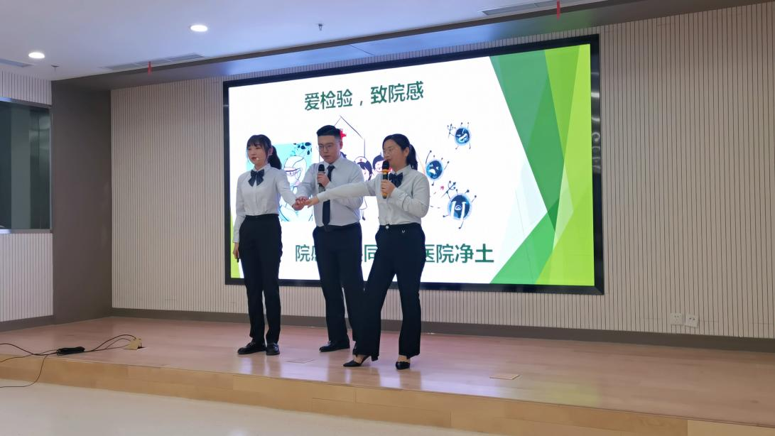 我院临床检测中心的三名年轻员工代表医院出战,以“爱检验,敬院感”为主题,详细介绍了院感的起源、重要性及检验人为院感付出的努力。以讲者亲身经历为切入点,富有感情地将娓娓道来,引起了听者的共鸣,赢得了在场观众的热烈掌声。比赛最后,我院代表队不负众望,以总92.33分的成绩荣获第二,仅以0.23分惜败第一名代表队。