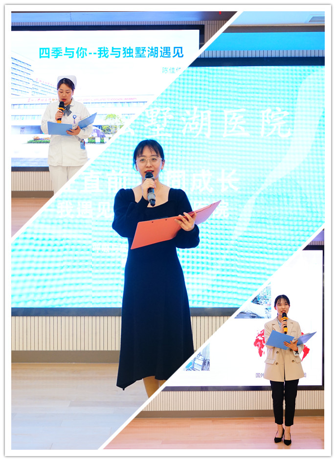 为进一步推进我院5·12国际护士节系列活动的开展加强党建文明建设树立医院形象彰显新时代奋斗者的风采。我院护理部结合“我与独墅湖医院的故事”活动主题,根据征文比赛投稿进行初筛选出15位选手的征文作品进入比赛。4月28日,我院举办“我与独墅湖医院的故事”征文演讲比赛活动本次比赛由护士长钱丹主持,院领导、相关职能科室负责人和青年医生代表担任评委。