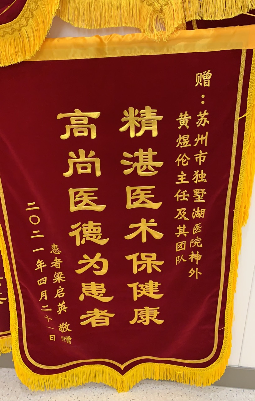 患者梁女士赠送锦旗感谢我院神经外科黄煜伦主任及其团队
