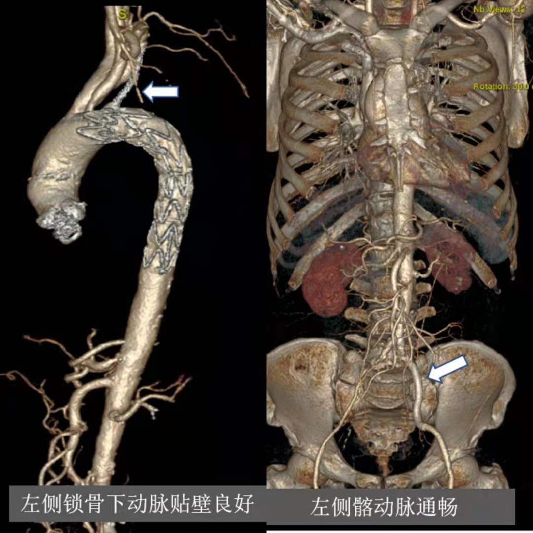 术后第二天张大爷就能下床活动,术后5天患者复查CT提示支架通畅,在位良好,支架贴壁紧合。