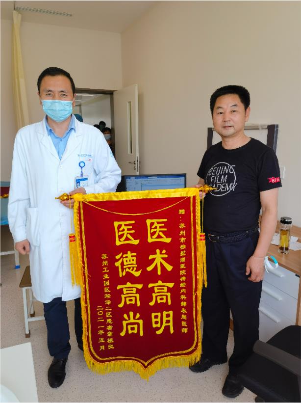 患者章先生及其家属赠送锦旗感谢我院神经内科郝永岗主任