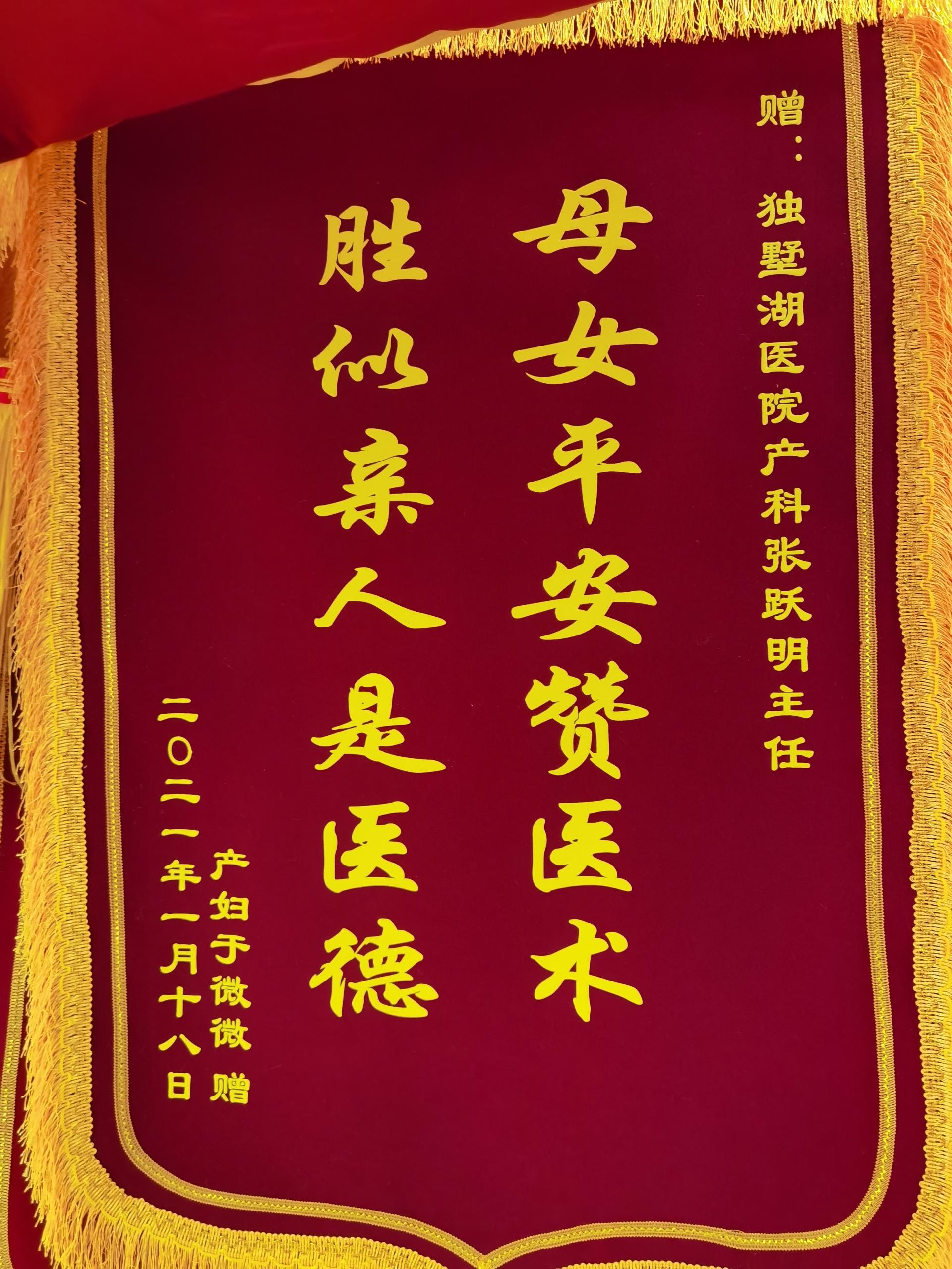 产妇于女士赠送锦旗感谢我院妇产科张跃明主任