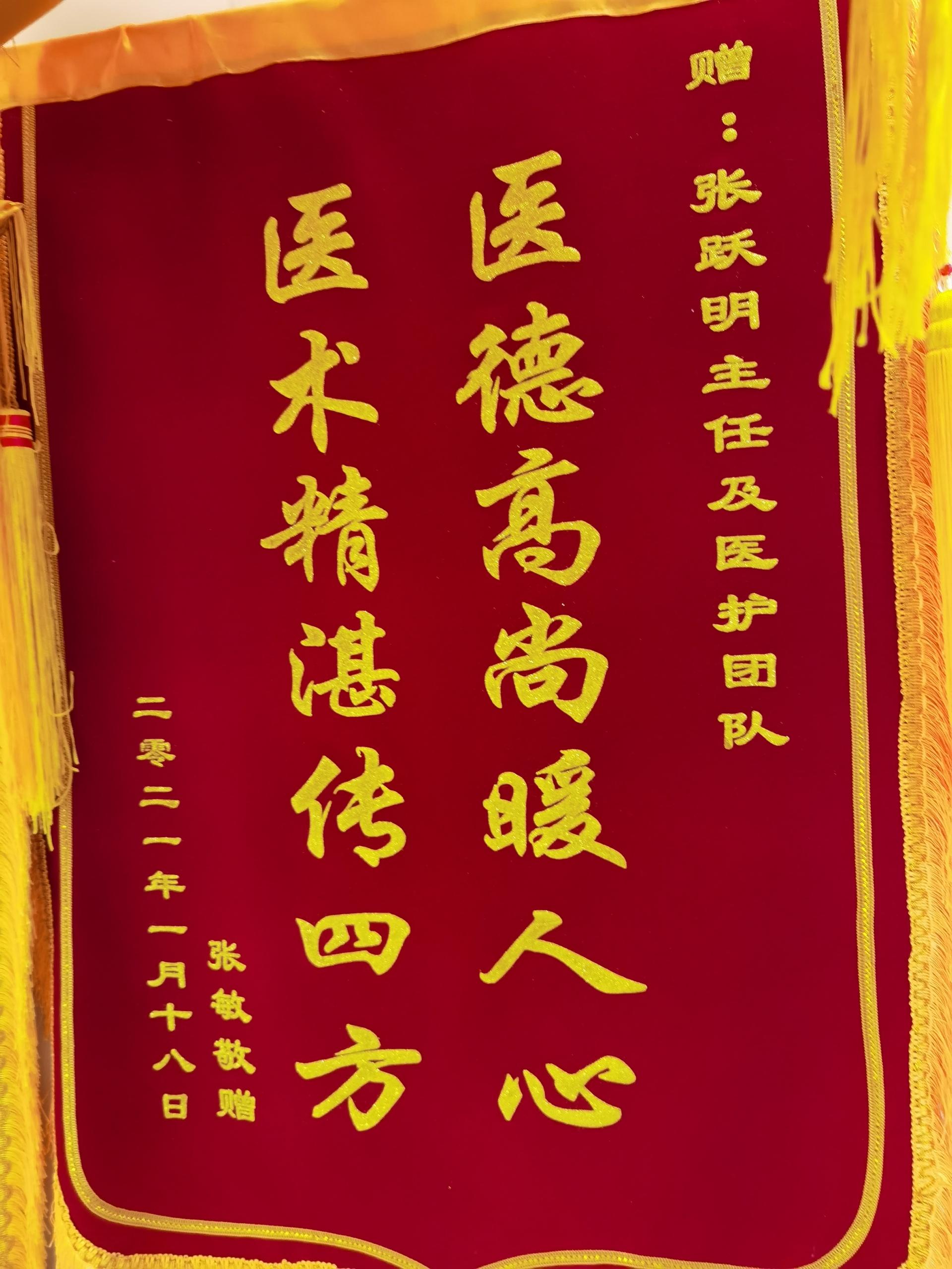 患者张女士及其家属赠送锦旗感谢我院妇产科张跃明主任及医护团队