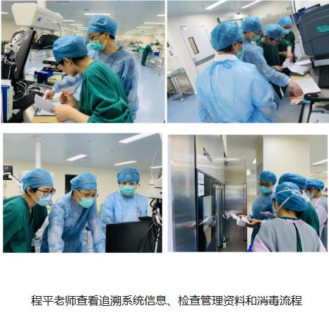 紧接着,程平老师实地查看了我院消毒供应中心,严格按照验收标准现场消毒供应中心的清洗、消毒、包装、灭菌流程及监测项目、管理资料、人员配置等方面给予系统严格的检查指导。