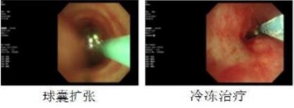 球囊扩张、冷冻治疗后,狭窄缓解,管腔通畅)