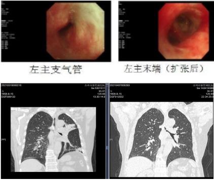 (术前CT:左主支气管狭窄并局部闭塞、远端阻塞性肺炎;