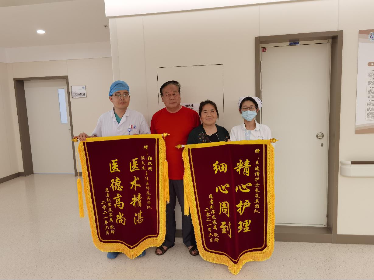 患者刘女士及家属赠送锦旗感谢我院妇产科张跃明主任、侯文杰副主任及其团队和王逸倩护士长及其团队