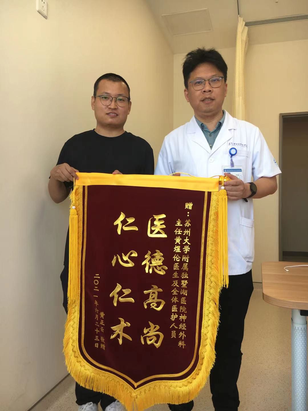 患者黄先生赠送锦旗感谢我院神经外科主任黄煜伦及全体医护人员
