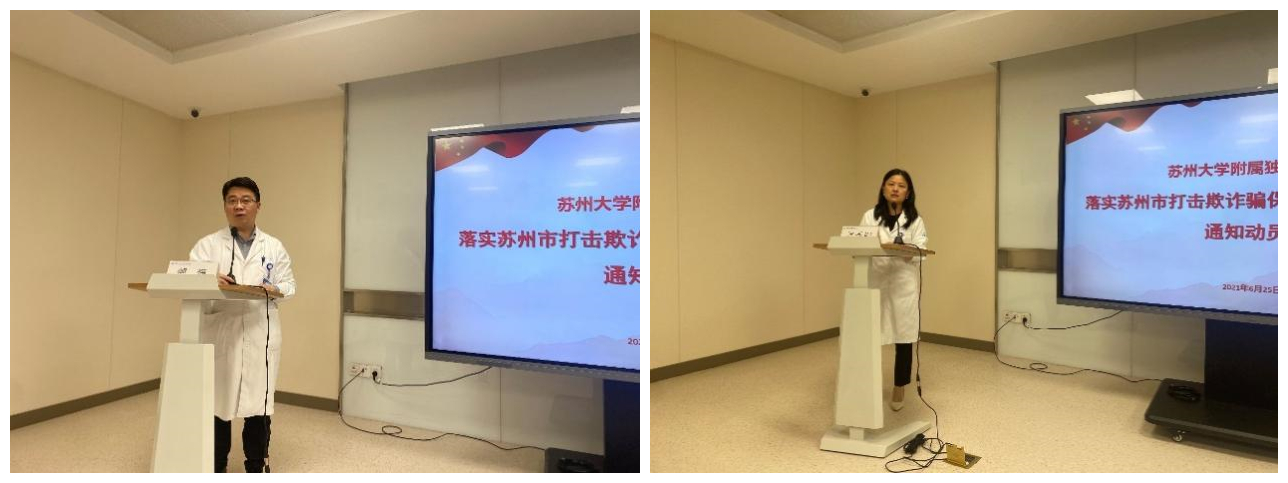 为坚决贯彻党中央、国务院关于加强医疗保障基金监管工作决策部署,苏州市医疗保障局、市公安局、市卫生健康委员会于今年6月至12月在全市联合开展打击欺诈骗保专项整治行动。为落实专项整治行动、提高医务人员维护基金安全的意识、规范使用医保基金行为,近日,我院组织召开了落实《苏州市打击欺诈骗保专项整治行动方案通知》动员会。市医疗保障基金管理中心稽查科副科长王颖舒出席会议,我院党委副书记、财务总监郭秀娟,副院长郭强,医保办、临床医技科室主任等40余人参加了会议。