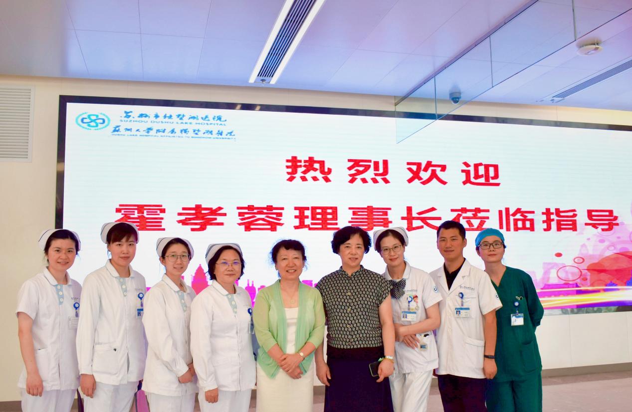 6月24日上午,受我院护理部的邀请,江苏省护理学会霍孝蓉理事长莅临苏州市独墅湖医院(苏州大学附属独墅湖医院)指导护理工作,我院党委书记侯建全院长,护理部王洁主任,科护士长沈梅芬老师陪同调研。