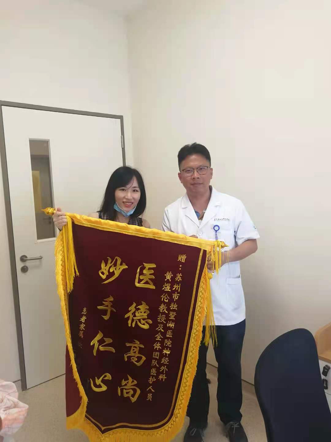 患者戴女士家属赠送锦旗感谢我院神经外科黄煜伦教授及全体团队医护人员