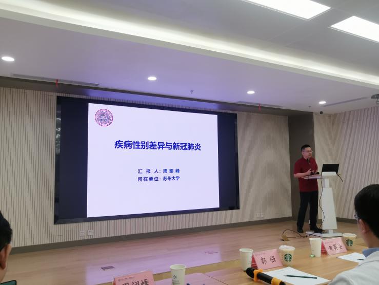 周翊峰教授发表“疾病的性别差异与新冠肺炎”演讲,阐述了自己与郭强副院长对新冠肺炎病情的研究成果。他们发现了AR抑制剂普克鲁胺能有效治疗新冠肺炎,撰写了相关论文、指南,以此为例分享了自己的研究体会和经验。