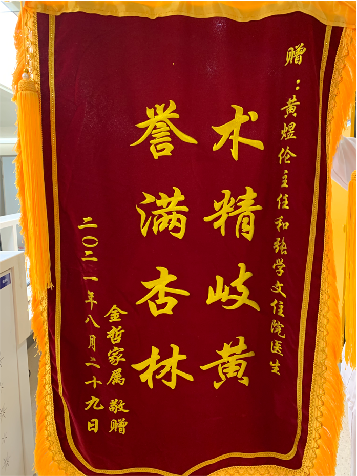 患者金先生家属赠送锦旗感谢我院黄煜伦主任和张学文医生