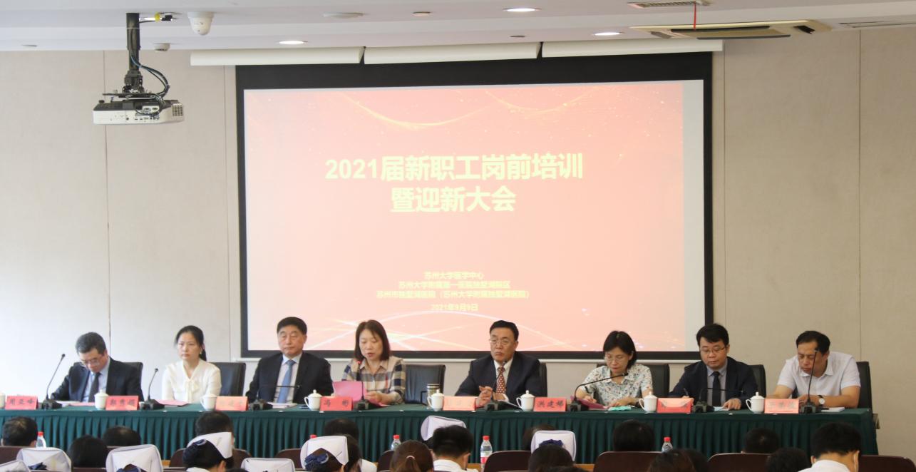 为增强医院凝集力,提升新职工认同感与归属感,加快推进医院文化建设,9月9日,独墅湖医院举行2021年新职工岗前培训暨迎新大会。苏州工业园区社会事业局副局长冯彬受邀出席,独墅湖医院全体院领导班子、各职能部门负责人及220余名新职工参加此次大会。会议由独墅湖医院组织人事处副处长贾德清主持。