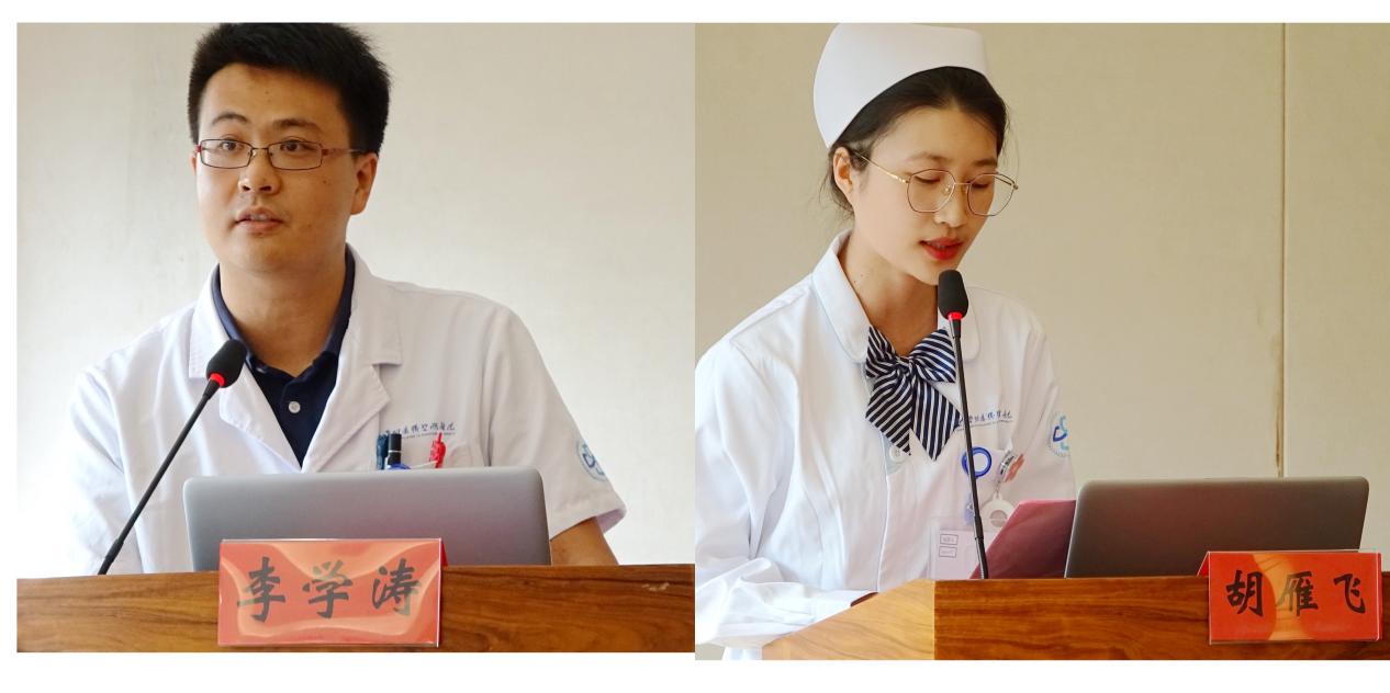 新职工代表李学涛、胡雁飞分别代表医生、护士发言。李学涛表示,独墅湖医院是一个机遇与挑战并存的平台,提出了“认真学习、刻苦钻研”“遵守纪律、自我约束”“学以致用、学用结合”三点自我要求。胡雁飞认为护理是一项可以终身为之努力奋斗的事业,唯有奋斗,慎终如始。希望紧跟医院步伐,为医院步入高质量发展的快车道贡献自己的一份力量。