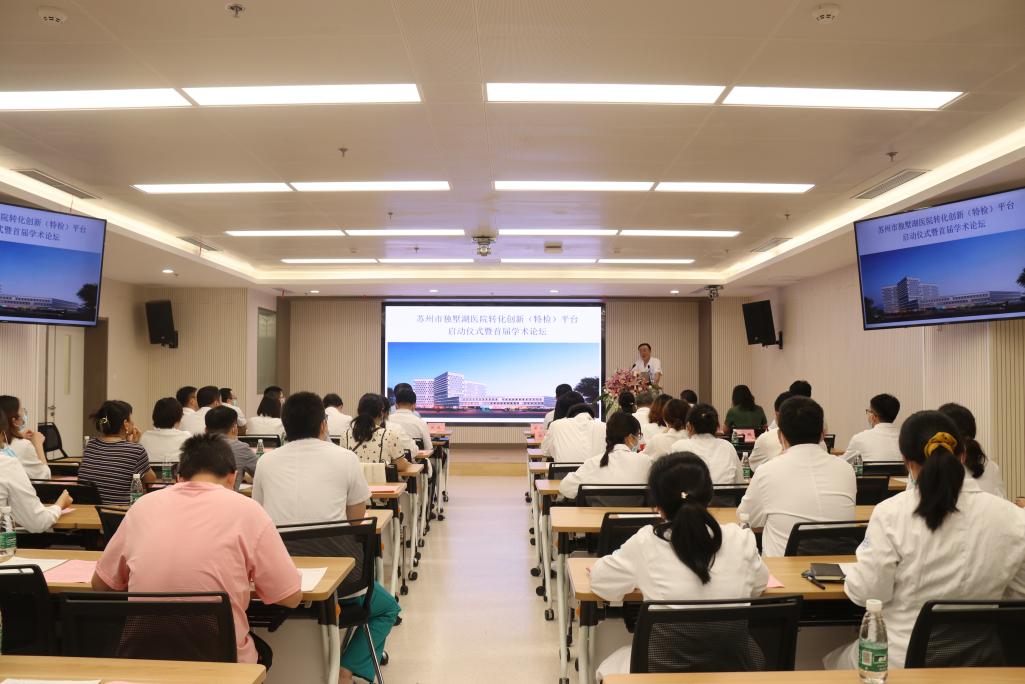 转化创新(特检)平台主任何军教授主持启动仪式及随后的平台首届学术论坛。来自上海复旦大学的徐晨明教授和独墅湖医院神经外科的黄煜伦教授分别就生殖、遗传及肿瘤领域的精准诊疗技术做精彩报告。院内外专家以及企业研发人员共100多人参加了启动仪式及学术论坛活动。