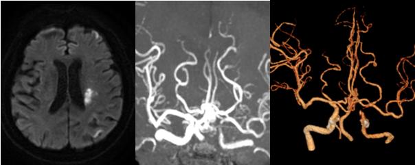 神经内科董万利主任带领团队对胡大爷的病情进行了分析评估。患者头颅磁共振发现左侧大脑中动脉供血区多发脑梗死,CTA+CTP检查提示:左侧颈内动脉颅内段混合斑块,管腔中-重度狭窄,最狭窄处接近闭塞;左侧大脑中动脉供血区缺血性灌注异常。诊断为:“脑梗死,左侧颈内动脉颅内段次全闭塞”。