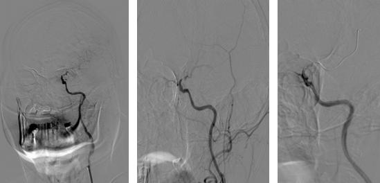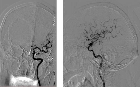 (术前造影左侧颈内动脉C6段次全闭塞血流缓慢)