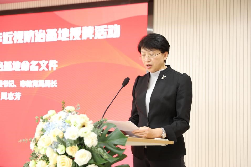 市教育局局长周志芳宣读了《关于确定首批苏州市儿童青少年近视防治基地和名单的通知》,强调各防治基地和建设单位要充分发挥专业技术优势,切实做好基地、社区、学校联防机制建设和近视预防综合治疗、监测干预、健康宣教工作,积极开展业务培训和综合指导,努力开展近视病因研究。