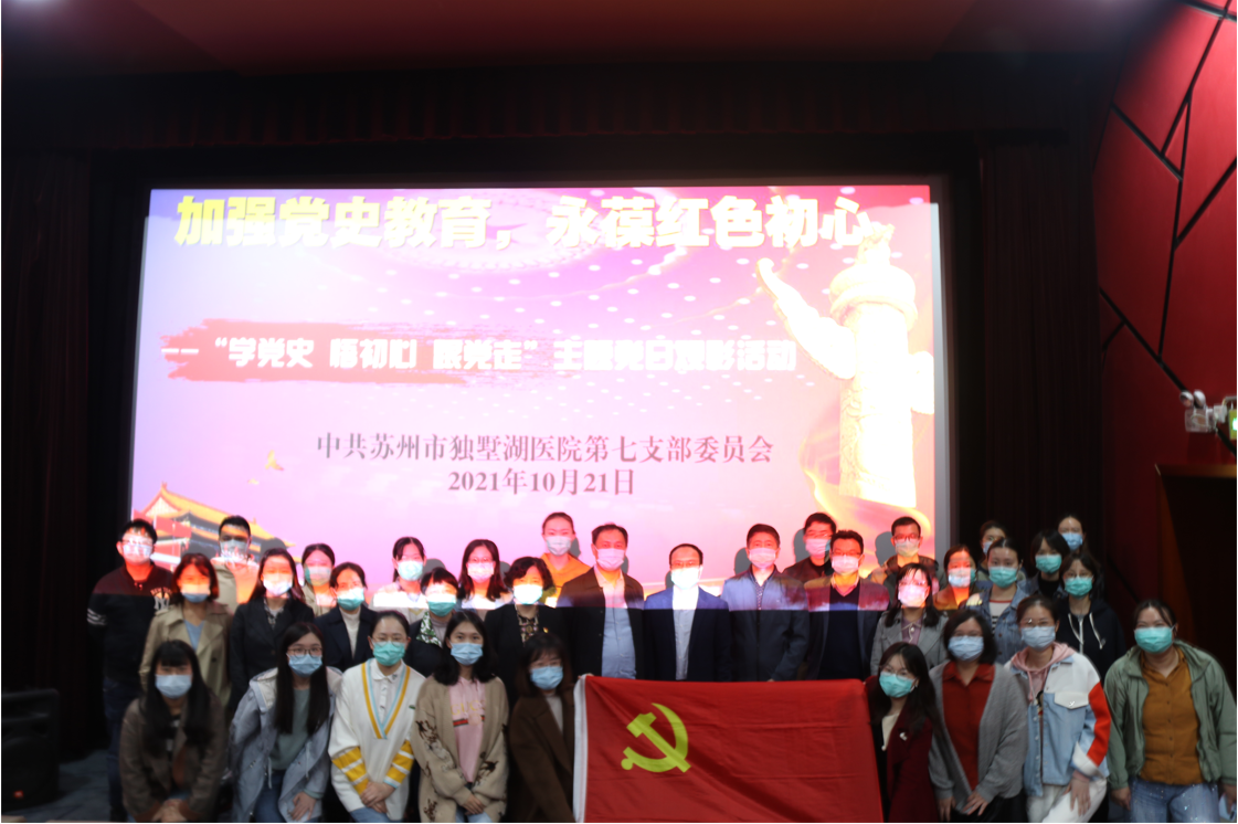 为庆祝中华人民共和国成立72周年华诞,进一步加强党史学习教育,增强党员的爱国主义精神。10月21日下午,苏州市独墅湖医院第七党支部组织党员同志和积极分子集中观看电影《长津湖》。