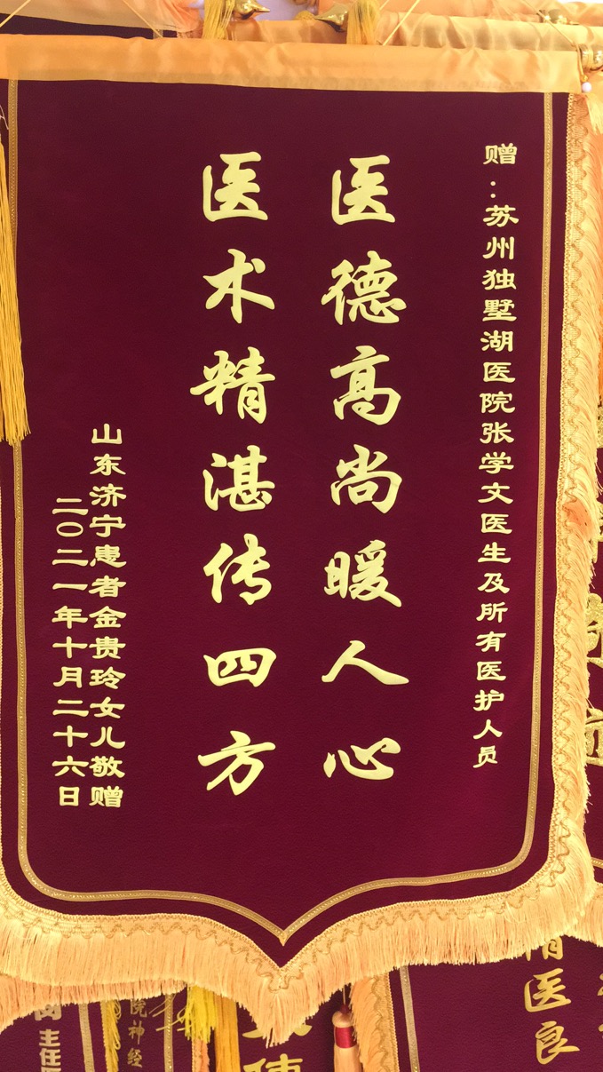 患者金女士及家属赠送锦旗感谢我院张学文医生及所有医护人员