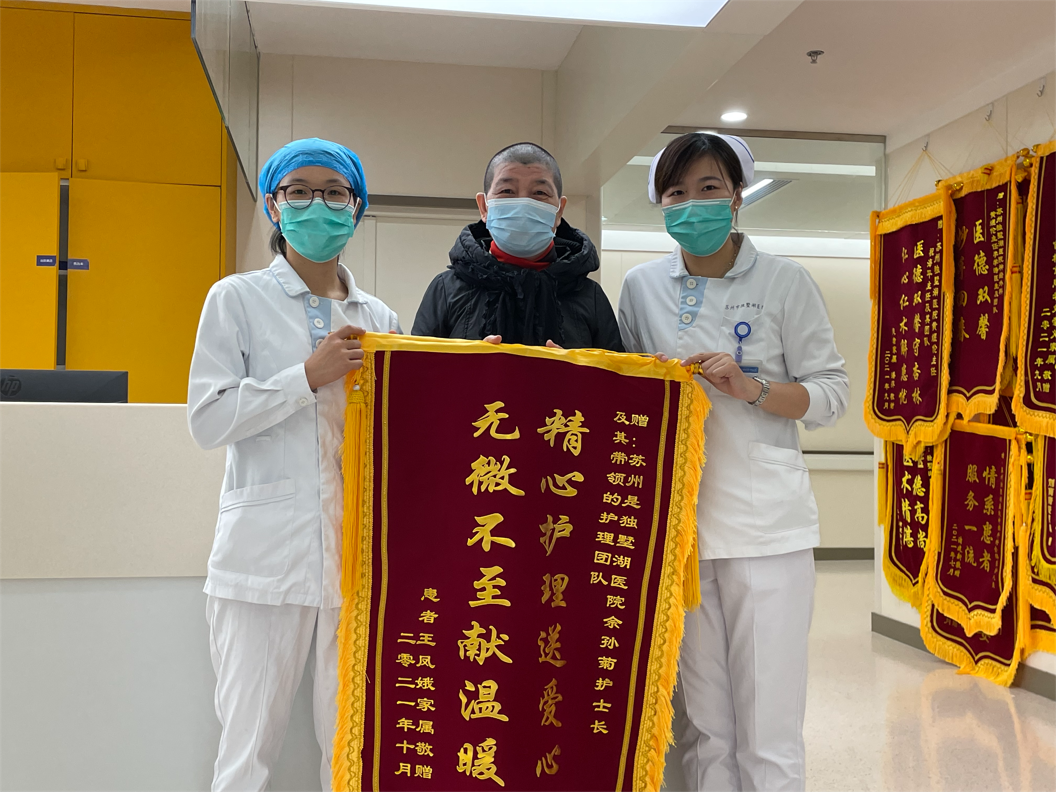 患者王女士赠送锦旗感谢我院佘孙菊护士长及护理团队