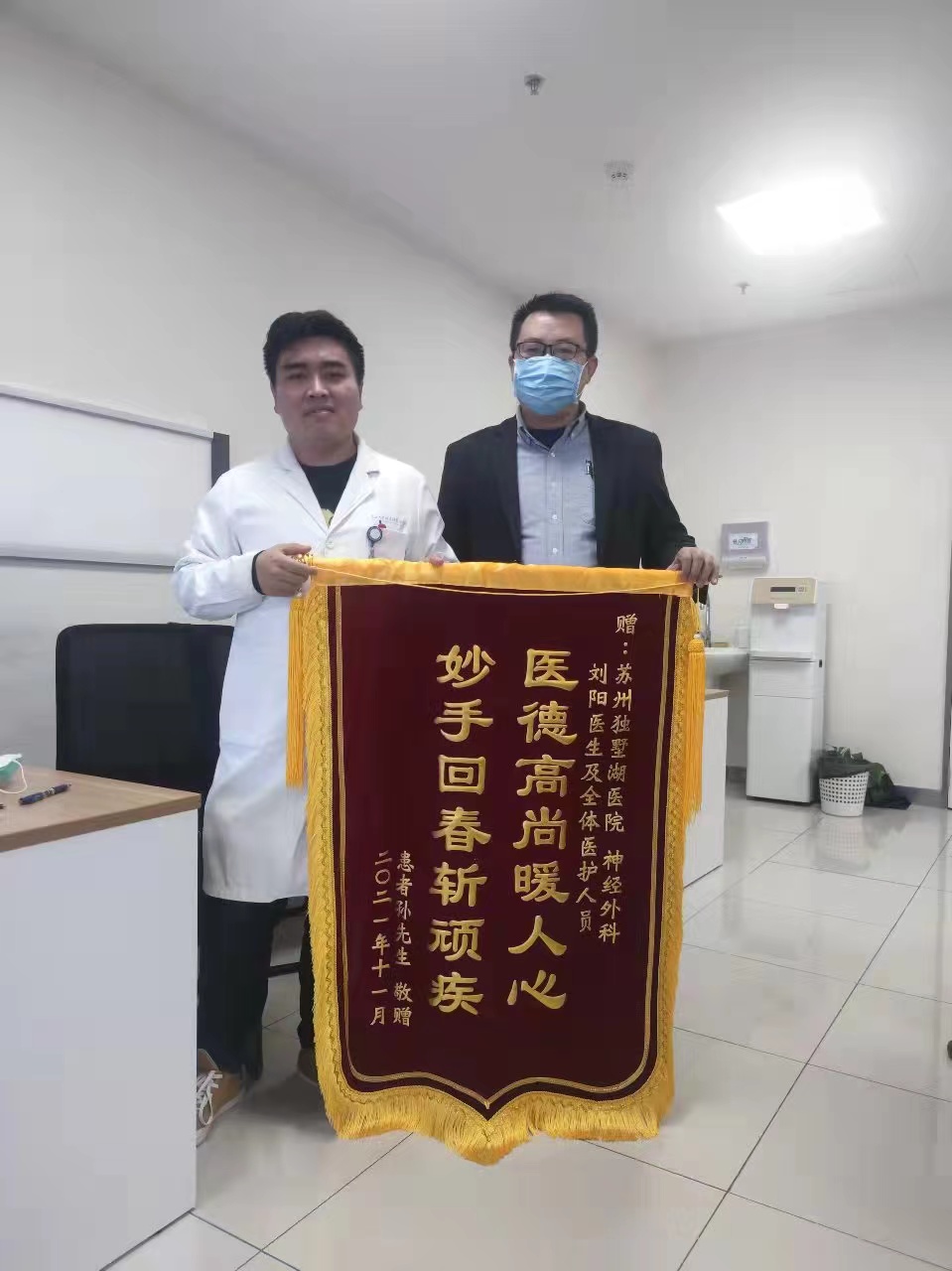 患者孙先生赠送锦旗感谢我院神经外科刘阳医生及全体医护人员