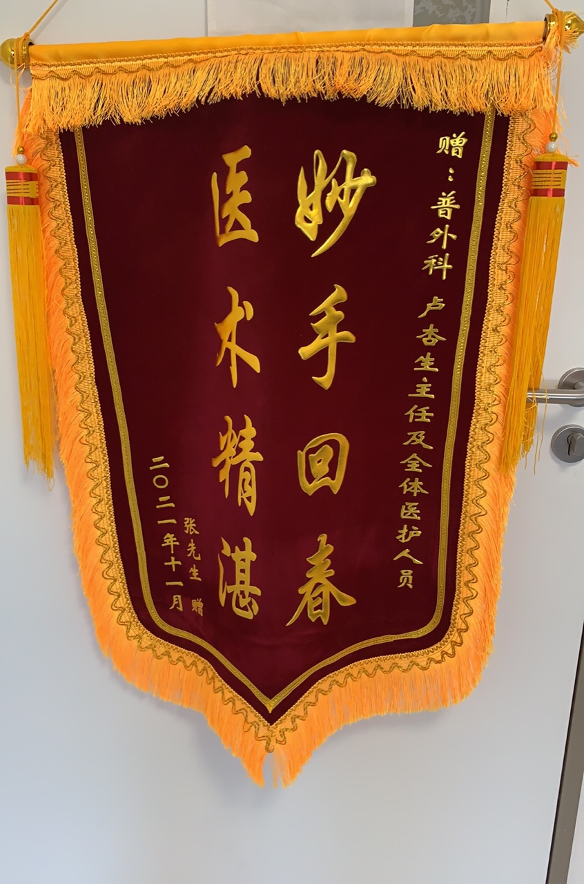 患者张先生赠送锦旗感谢我院普外科卢杏生主任医师及全体医护人员
