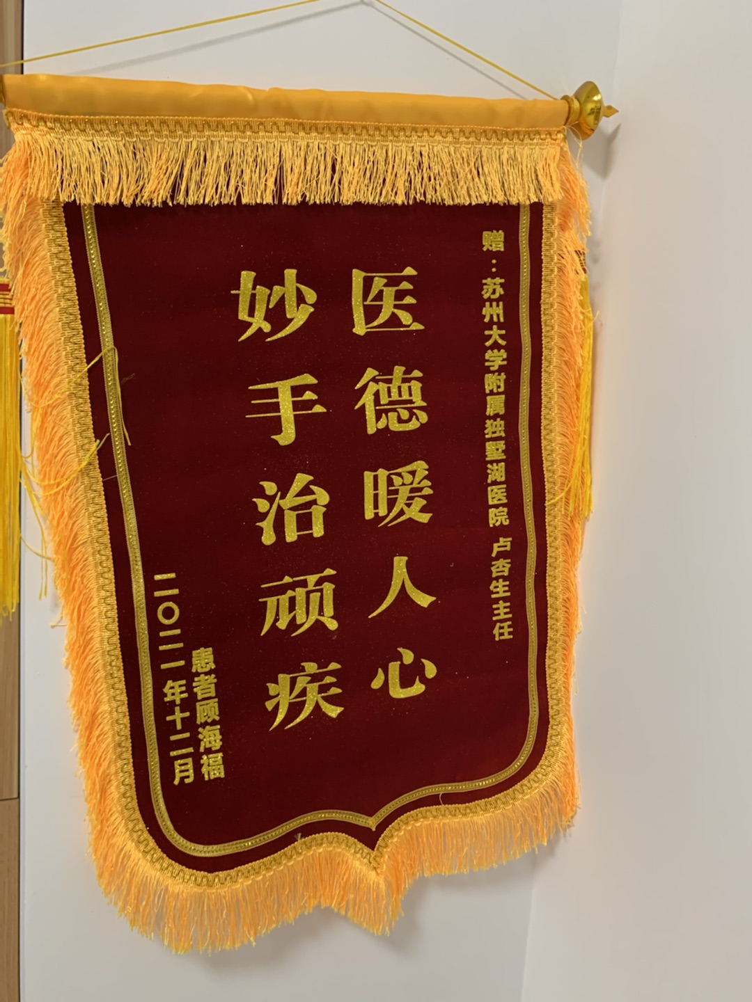 患者顾先生赠送锦旗感谢我院普外科卢杏生主任医师