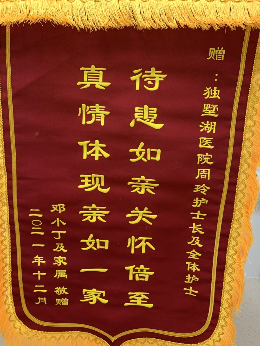 患者邓先生赠送锦旗感谢我院周玲护士长及全体护士