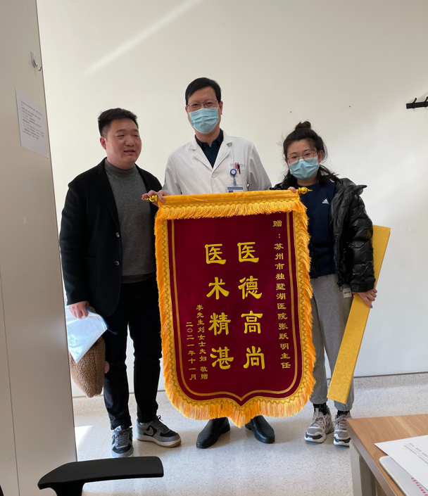 患者刘女士及家属赠送锦旗感谢我院妇产科张跃明主任