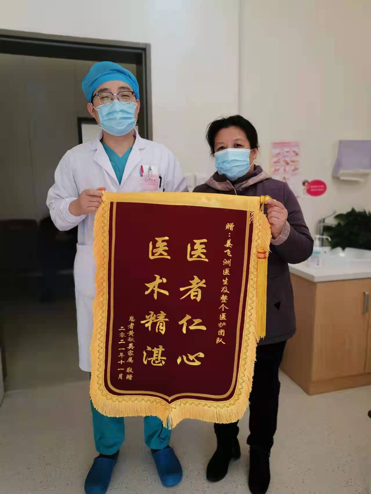 患者黄女士及家属赠送锦旗感谢我院妇产科姜飞洲医生及医护团队