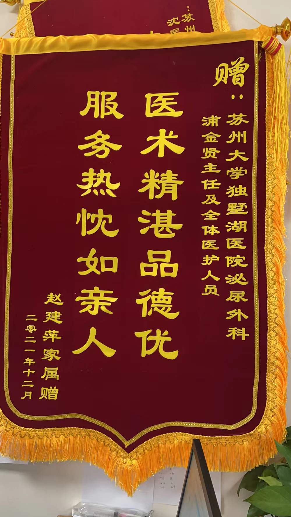 患者赵女士及家属赠送锦旗感谢我院泌尿外科浦金贤主任及全体医护