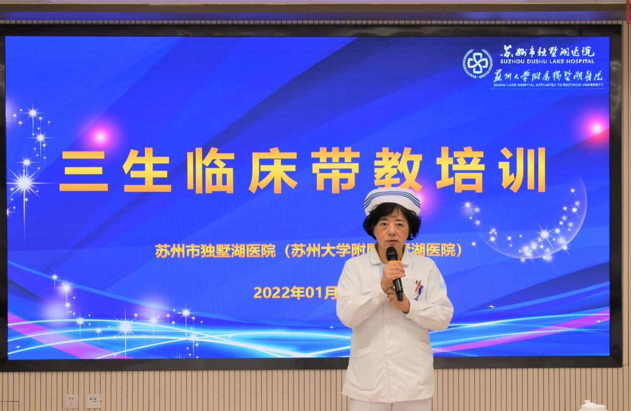 2022年伊始,苏州市独墅湖医院(苏州大学附属独墅湖医院)已陆续接收各大院校实习生、研究生和进修生(简称“三生”),为规范临床教学管理,提高带教老师的综合素质和教学质量,1月19日中午,我院护理部在负一楼会议室开展了临床护理实习生带教老师培训,由苏州大学附属第一医院教学科负责人王婷护士长以及我院赵丹护士长组织授课,护理部王洁主任、大科护士长沈梅芬、各病区护士长及带教老师参加了此次培训。