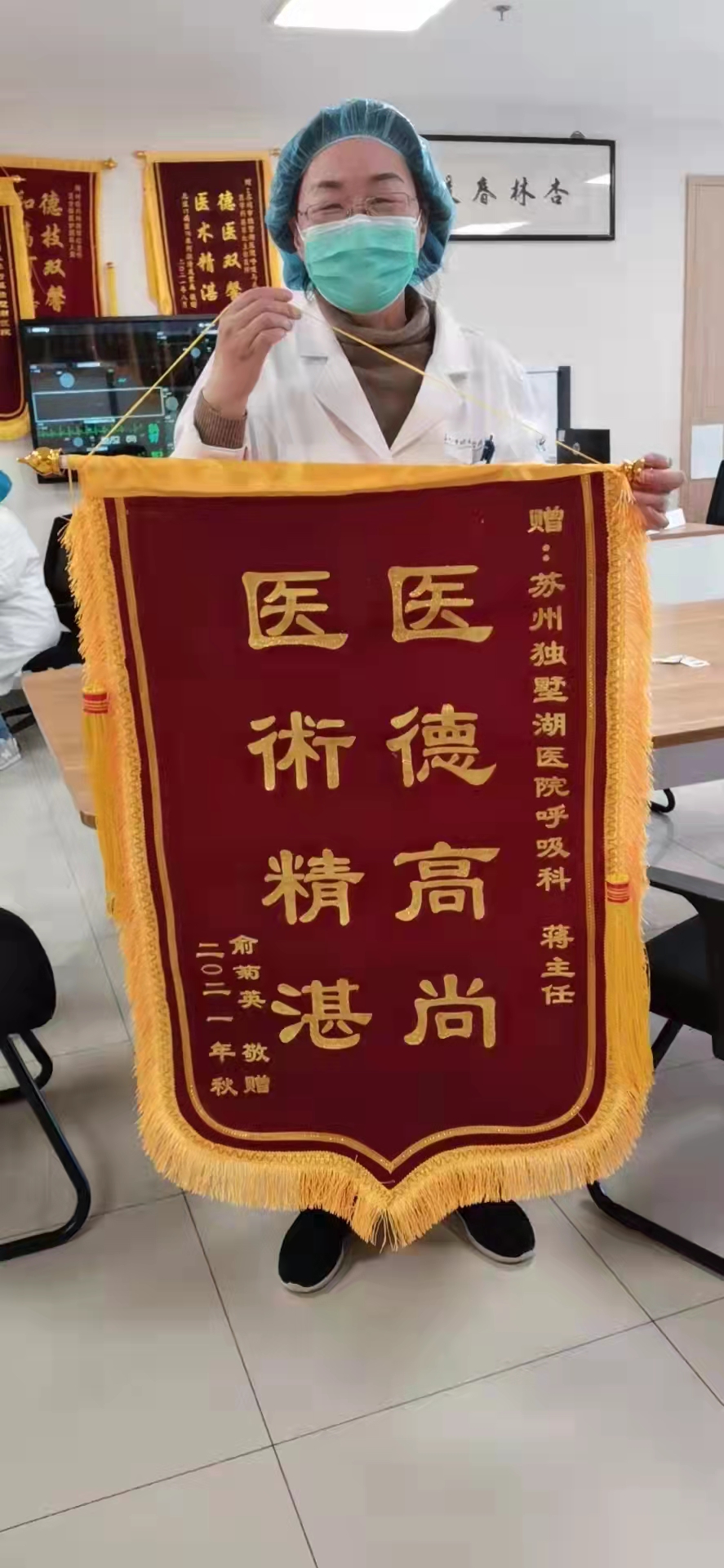 患者俞女士赠送锦旗感谢我院呼吸与危重症医学科蒋军红主任