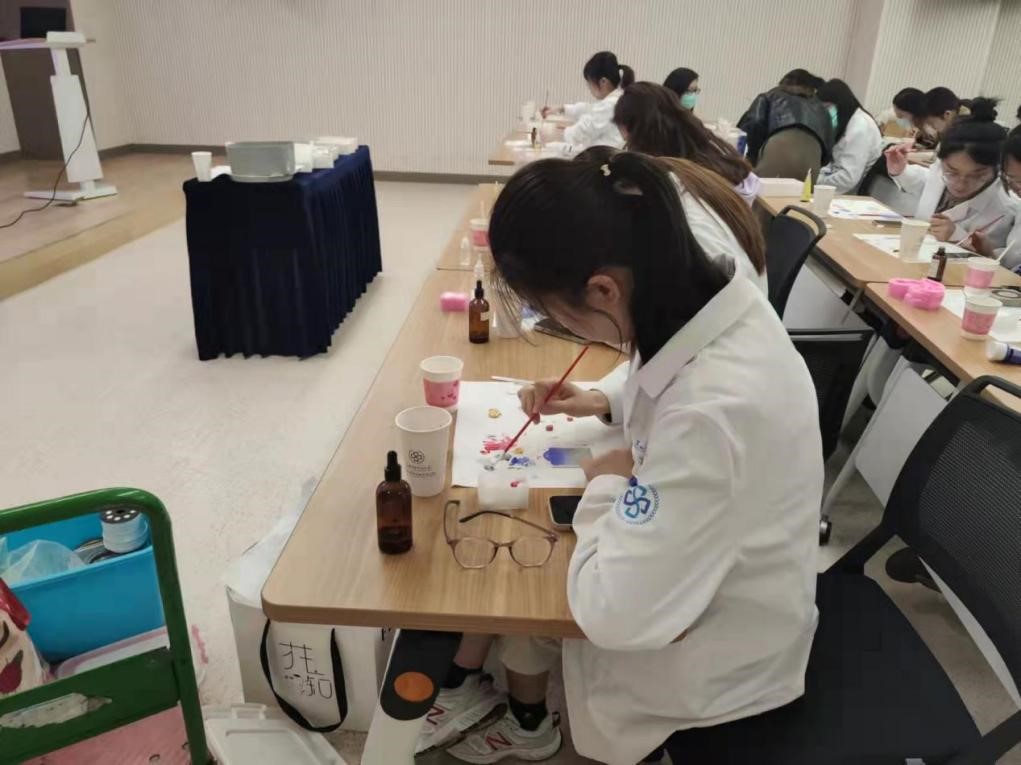 最后一场活动是石膏香薰片制作。女职工们在老师的指导下开始了DIY活动。从香薰石膏介绍,案例分享,制作技巧,到石膏素体的制作,再到独立上色,最后配饰搭配完成3D立体作品。女职工们充分发挥个人想象力,用精益求精的工匠精神创造出一个个色彩斑斓的石膏作品。培训室及走廊的空气中弥漫着淡淡的精油香味,沁人心脾。