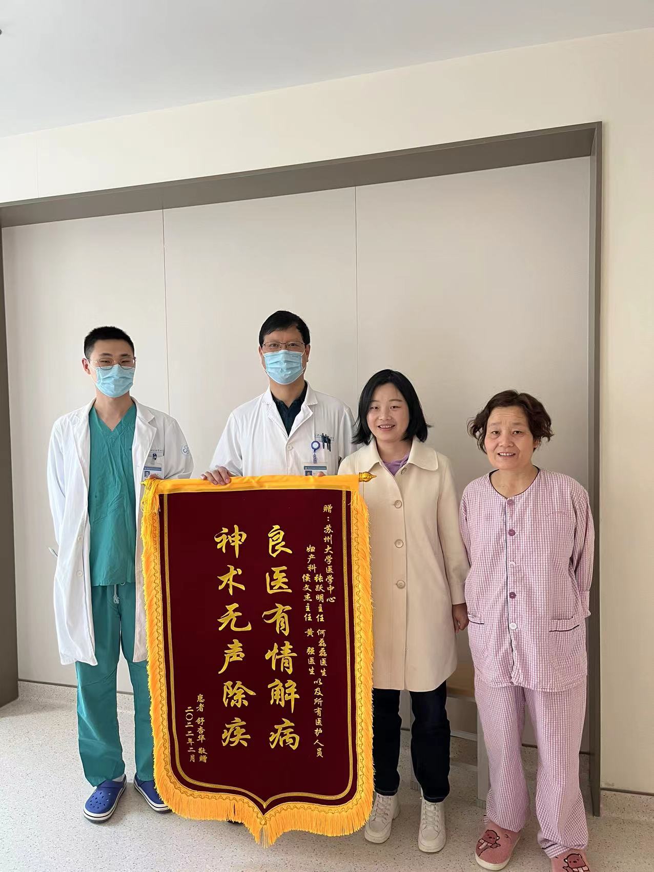 患者舒女士赠送锦旗感谢我院妇产科张跃明主任、侯文杰副主任医师、黄强医生、何磊磊医生及全体医护人员
