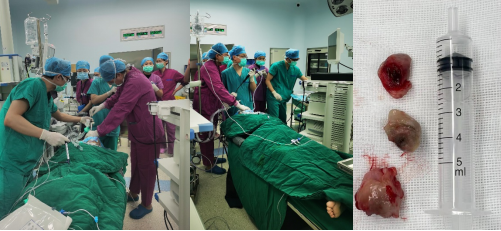 蒋军红主任团队及呼吸科、麻醉科在手术中 成功切除三块新生物