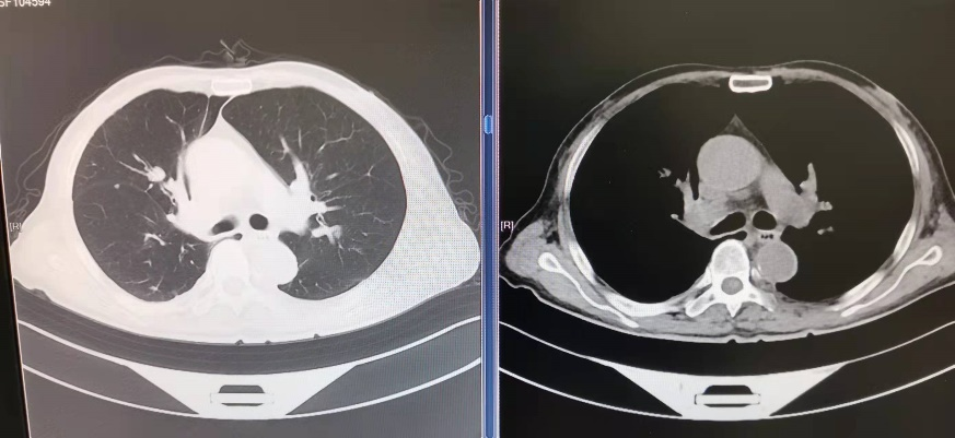 70岁的吴先生近2个月出现胸闷、气喘症状,最近几天轻微活动就有症状加重,乏力、纳差明显,一般情况不佳。外院胸部CT可见气管、右主支气管内软组织影,右上肺不张。患者既往有肾恶性肿瘤病史,伴全身多处转移,因此考虑到气道内软组织为肾癌转移所致。该患者先在上海就诊,后辗转昆山、苏州市内等多家三甲医院,均未解决气道阻塞的问题。由于当时疫情严重,呼吸科作为高风险专科,苏州地区所有医院的普通气管镜诊疗活动全部暂停。