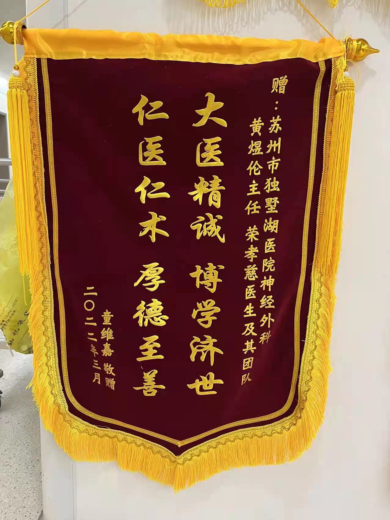 童先生赠送锦旗感谢我院神经外科黄煜伦主任、荣孝慈医生团队