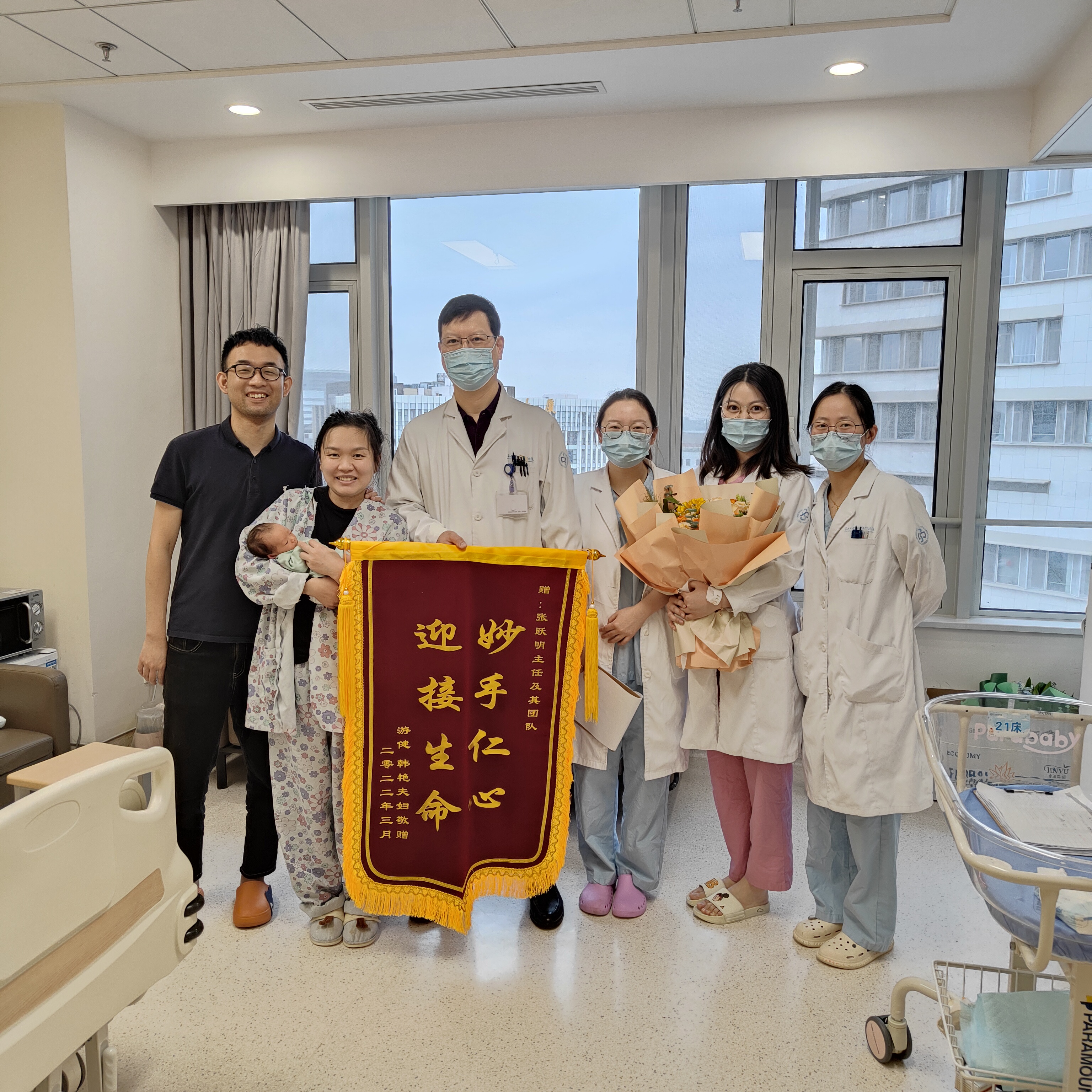 患者韩女士及家属赠送锦旗感谢我院妇产科张跃明主任团队