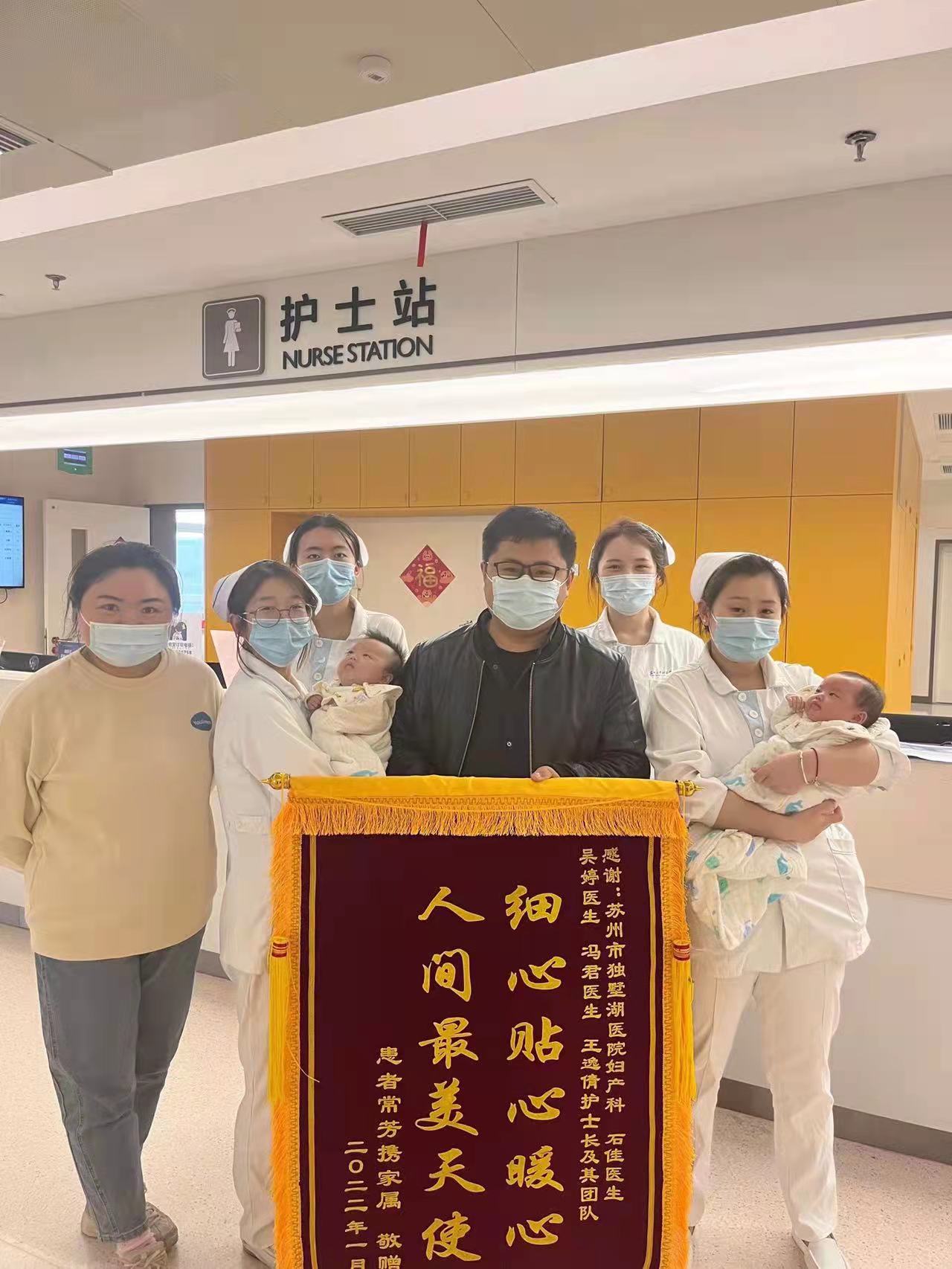 患者常女士及家属赠送锦旗感谢我院妇产科石佳医生、吴婷医生、冯君医生、王逸倩护士长及其团队