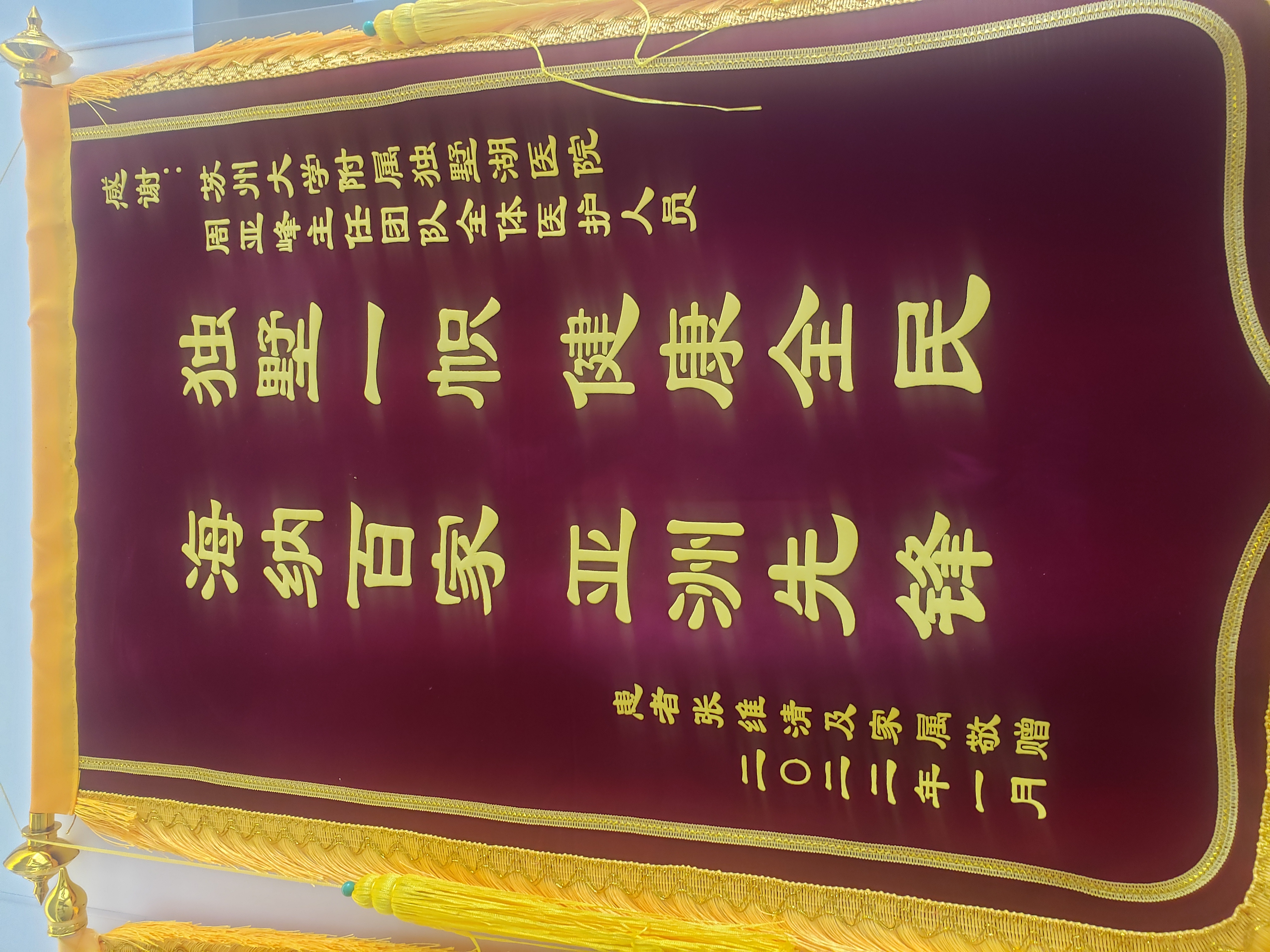 患者张先生赠送锦旗感谢我院周亚峰副院长
