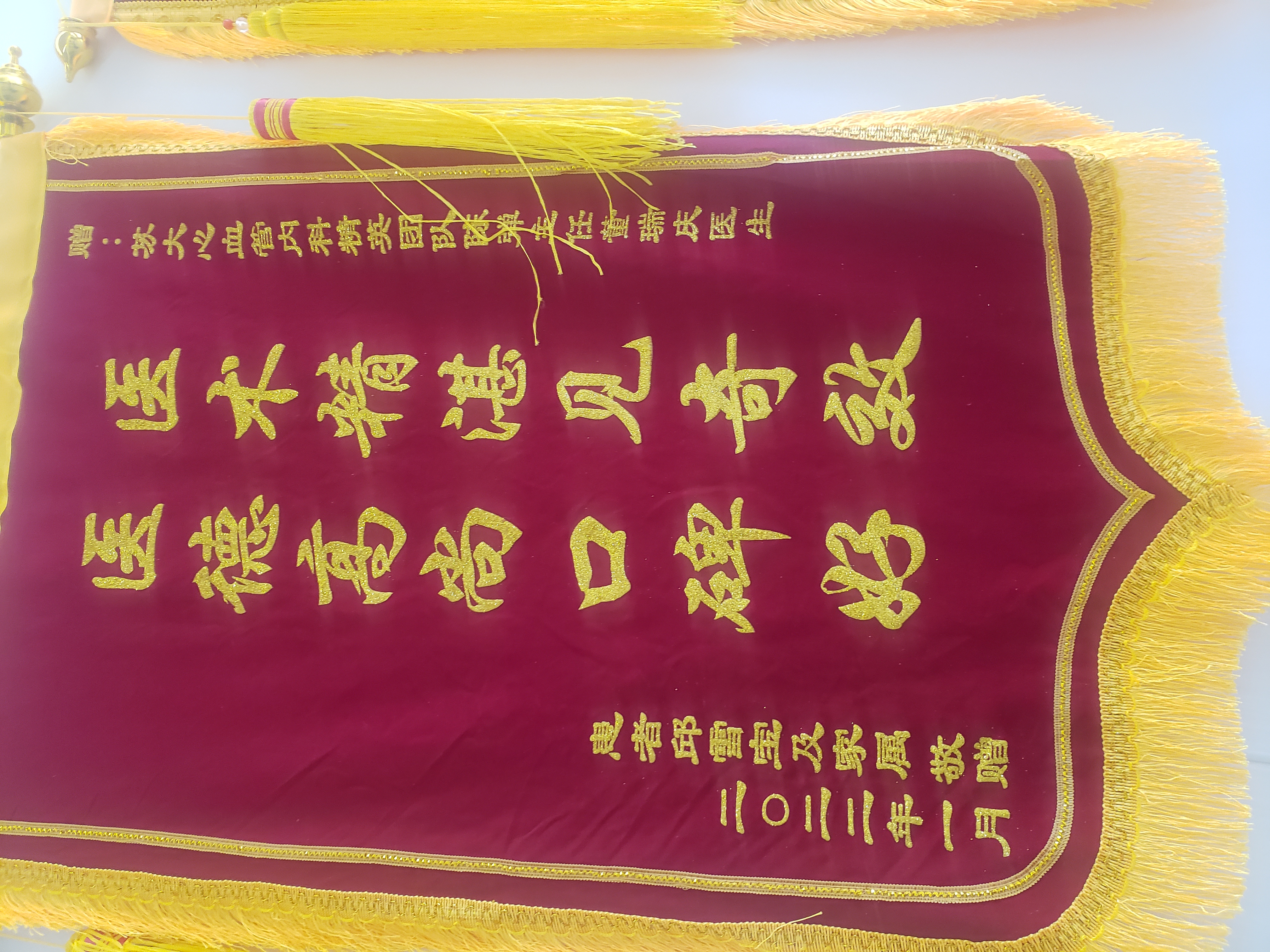 患者邱女士赠送锦旗感谢我院心血管内科陈弹主任医师、董瑞庆医生