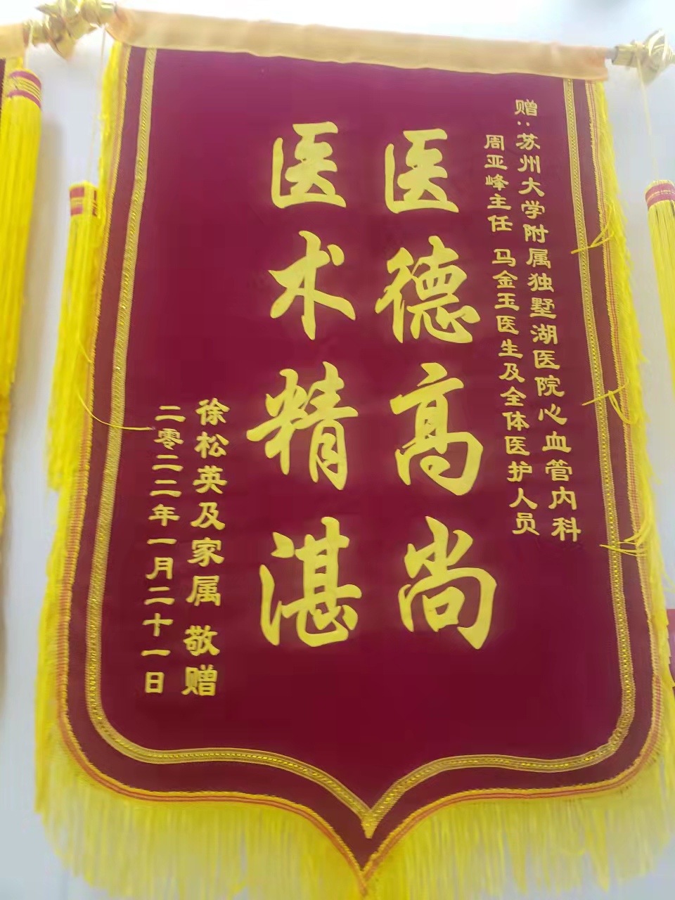 患者徐女士赠送锦旗感谢我院周亚峰副院长、心血管内科马金玉医生及全体医护