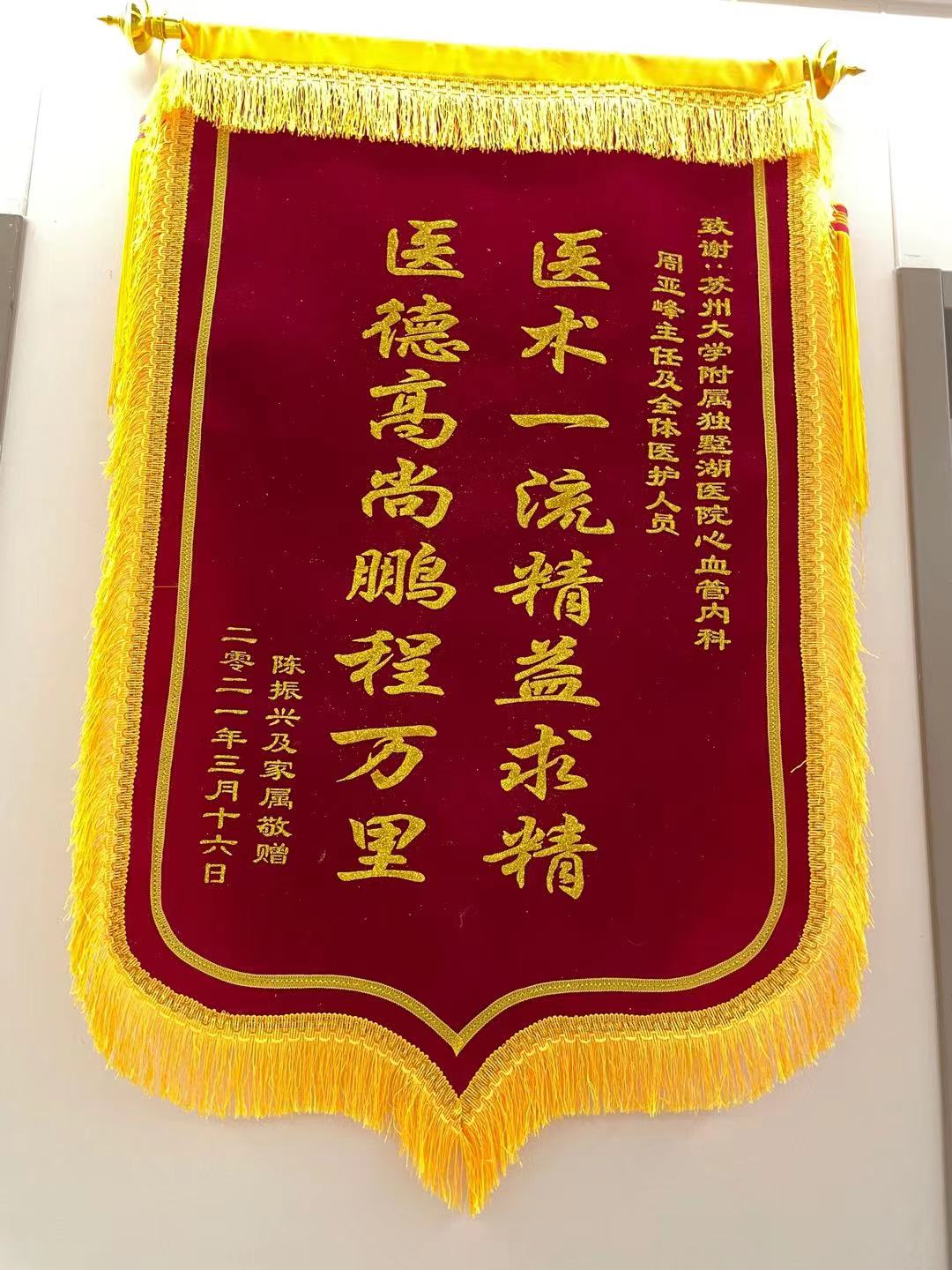 患者陈先生赠送锦旗感谢我院周亚峰副院长及全体医护